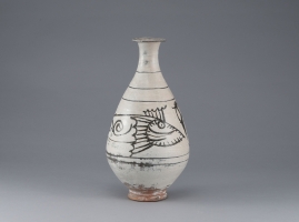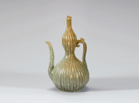 청자상감죽절표형주전자는 고려 13세기 후반 부안 유천리 요지에서 만들어진 청자다. 죽절 마디마디 장식이 백상감으로 시문되어 있다. 굽다리에 점토가 섞인 빚은 받침의 흔적이 남아 있다.