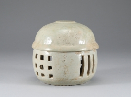 분청자음각연화조문투각불감은 조선 15세기 합 모양의 불감이다. 뚜껑에는 선각으로 새겨진 새와 연꽃 무늬가 있다.