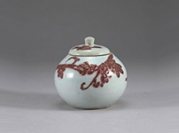 백자진사포도문유개호