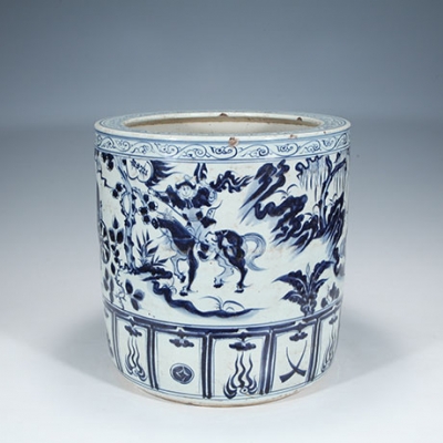 2005년도 크리스티 경매에서 282억에 낙찰된 도관과 일치하는 원대 청화귀곡자하산도 도안으로 지통형 유물은 귀중한 유물로서 원나라 황실에서 사용했던 유물로 사료됩니다. 경매에 출품되었을 시에는 2005년도크리스티 경매에서 낙찰된 유물보다도 모든 면에서 높이 평가될 것입니다.